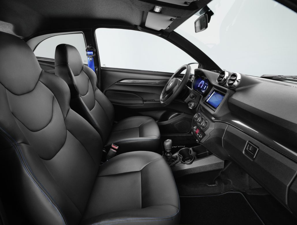 | GT kárpitozás, fekete bőr kék szegéssel |
